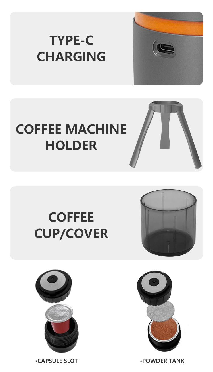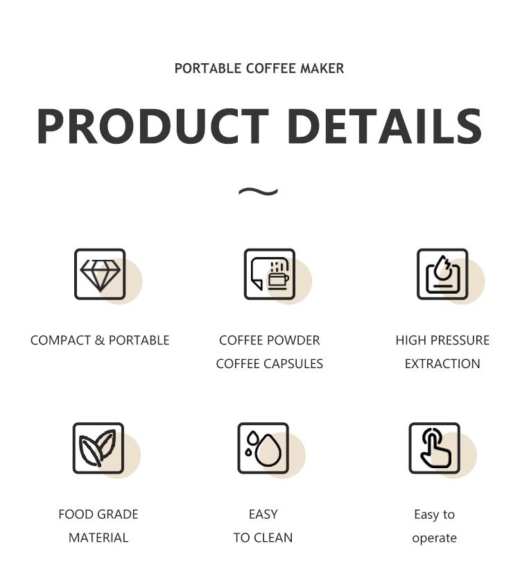 Portable Automatic Smart Drip Coffee Maker Type-C Charging Electric Hot Water Capsule Espresso Machine for Outdoor Use